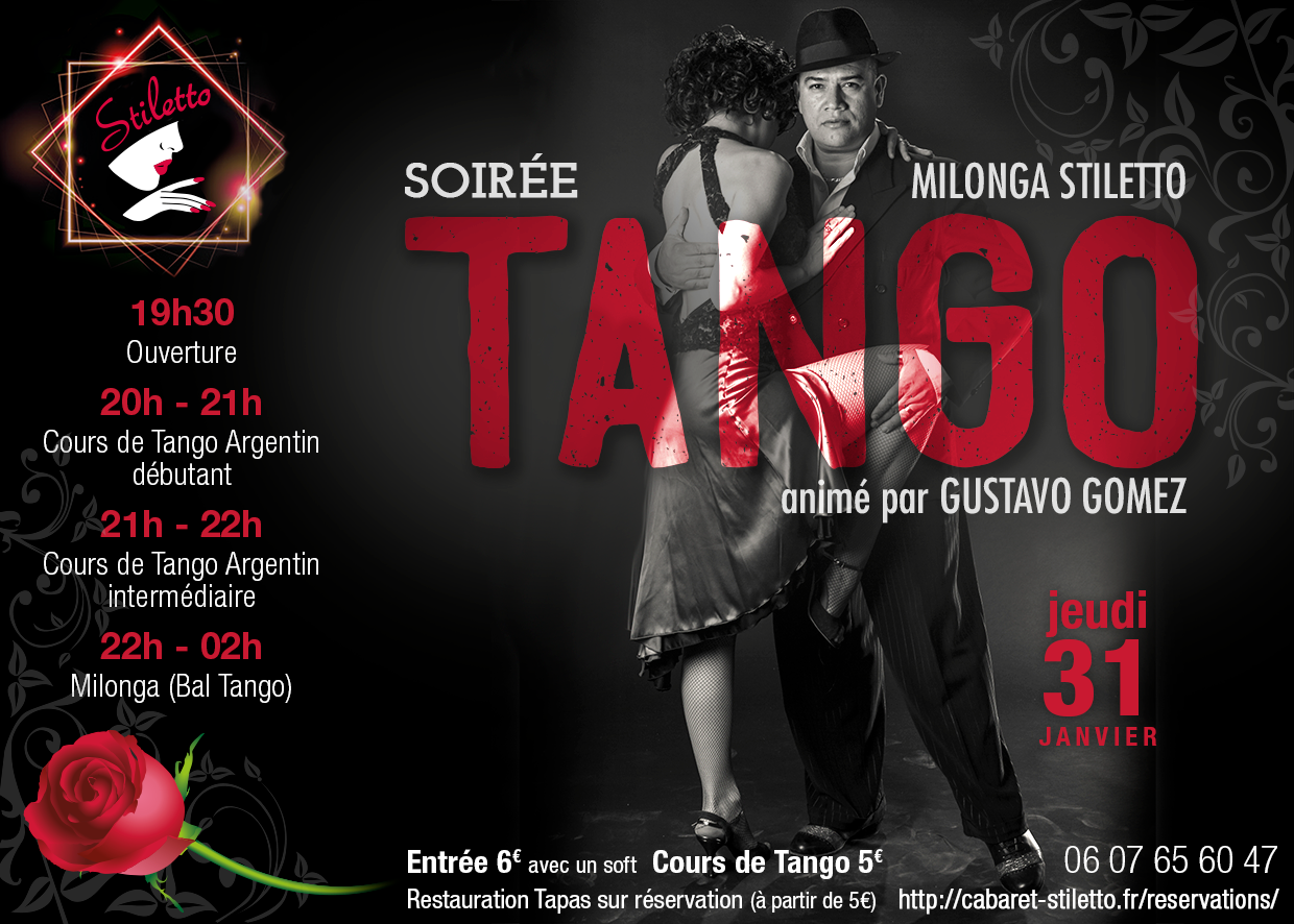 C’est avec un Maestro de la discipline, Gustavo Gomez, que nous vous proposons un bal de Tango argentin, précédé d’un cours de danse de niveau intermédiaire (1h).